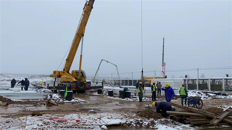 2月8日,新年的第一場暴雪終于遏制住怒吼,各搶建班組全力加速推進準(zhǔn)備區(qū)折疊房和隔離區(qū)打包房的安裝,室內(nèi)淋浴房、水電及室外電力電纜井砌筑等多個作業(yè)面施工全面展開,現(xiàn)場掀起節(jié)后施工新一輪大干熱潮。