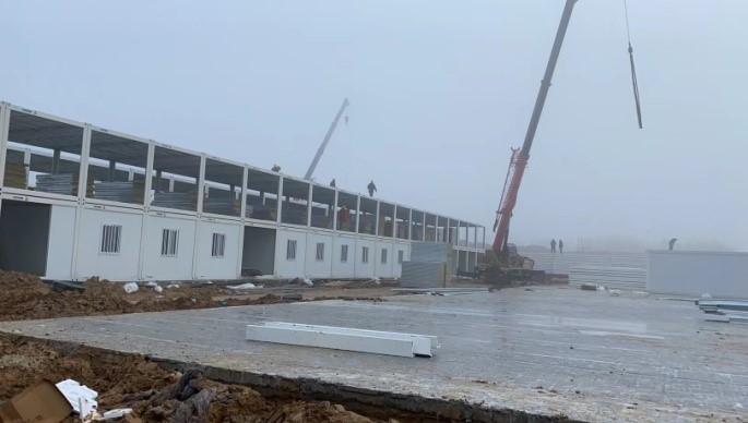 項目現(xiàn)場,房屋班組持續(xù)推進隔離區(qū)板房安裝,空調(diào)、熱水、家具班組配合完成室內(nèi)部分設(shè)施安裝,室外附屬班組利用晴好天氣搶建室外走道、圍墻,搶鋪綠化草皮……各功能班組交叉作業(yè),趕進度、搶工期,全面梳理每天工作內(nèi)容,嚴把施工質(zhì)量、嚴管作業(yè)安全、嚴控施工進度,為完成目標任務(wù)而不懈努力。他們始終堅守在自己的陣地上,多少個日夜里,他們忘記了寒冷、忘記了辛苦,甚至忘記了與家人團聚的日子,只為完成肩上的使命,確保隔離點按時完工。